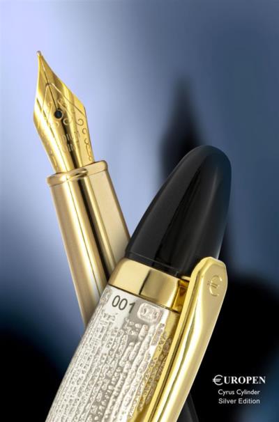 - قلم منشور کوروش به شکلی منحصر به فرد و با متن و فرم مینیاتوری منشور حقوق بشر کوروش کبیر روی درب قلم که نقره است ساخته شده است.
