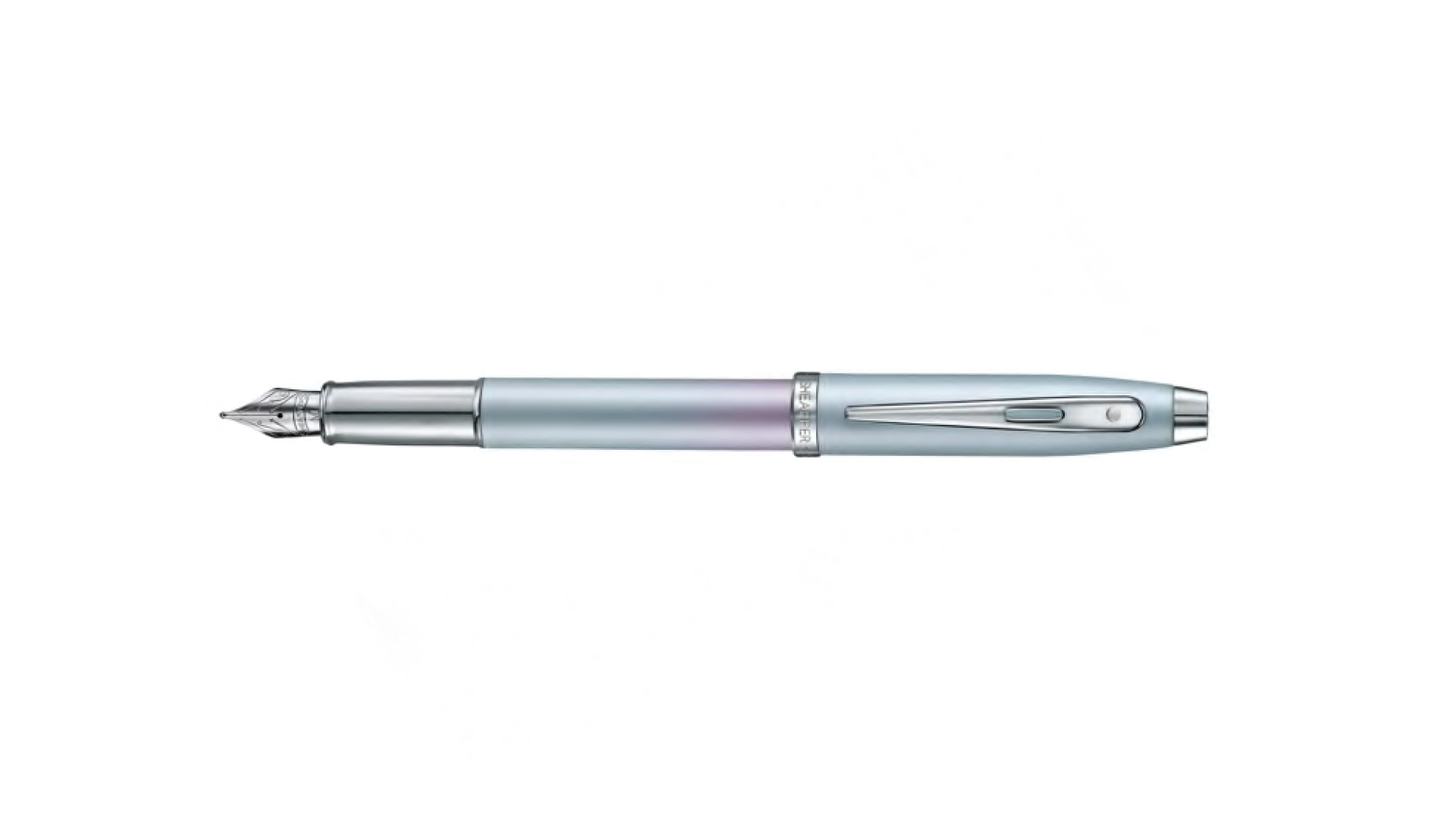 - قلم مزین به طیف رنگ ترکیبی آبی نقره ای و صورتی مات پودری روی بدنه می باشد